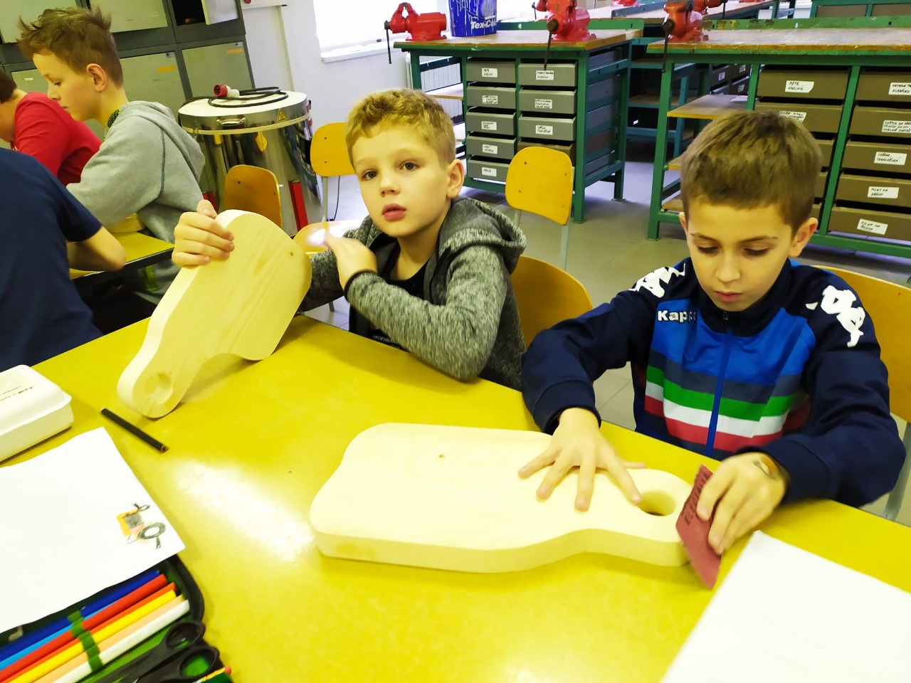 A nakonec jsme se pustili do broušení a čistění kuchyňských prkének, které nám přichystal a finálně ozdobil p. Matěj Horký. Hotová prkénka jsme odnesli maminkám a tatínkům pod stromeček.